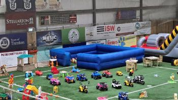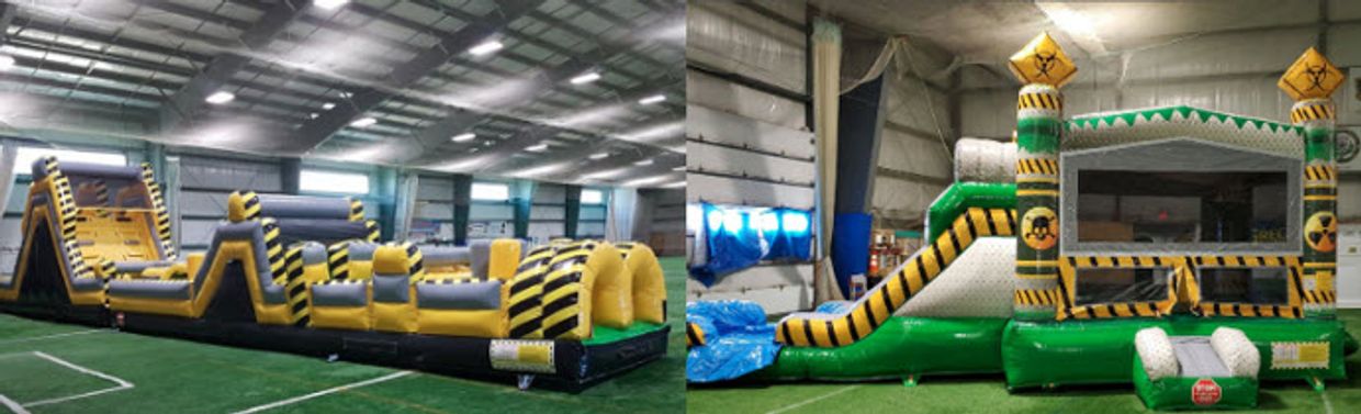 Includes "Toxic Rush" large bouncy house and "Toxic Combo" bouncy house with 45 minutes of field time and one (1) hour in the viewing area. Extra bouncy houses available for $100 each.